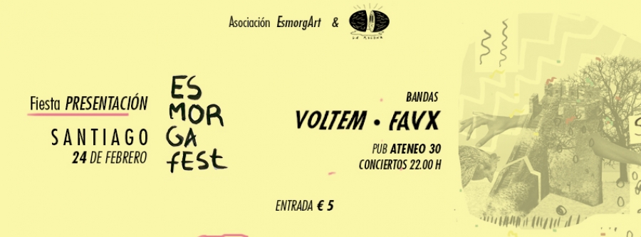 El Festival Esmorga Fest se presenta en el Ateneo 30 de Santiago de Compostela el viernes 24 de febrero con los directos de Voltem y Favx.
